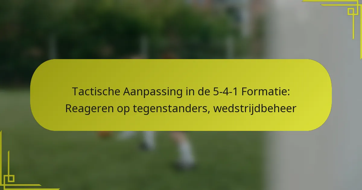 Tactieken in de 5-4-1 formatie aanpassen vereist het analyseren van de sterkte en zwakte van de tegenstander. Bij het spelen tegen een sterk aanvallend team kan de focus verschuiven naar een defensievere houding, terwijl tegen een zwakkere tegenstander het team agressiever kan zijn in druk zetten en counteraanvallen, wat zorgt voor flexibiliteit in de aanpak.